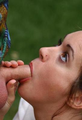 Бегая по лужайке, эротичная брюнетка в откровенном платье соблазняла друга и подмигивала. Ополоснувшись, черноволосая развратница встала на колени, взялась за основание члена и принялась делать минет. Сладкая нимфа сосал хуй до тех пор, пока ее не накормили спермой.