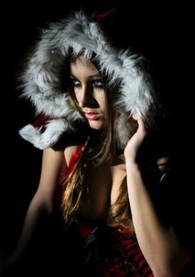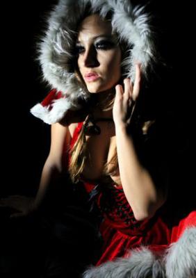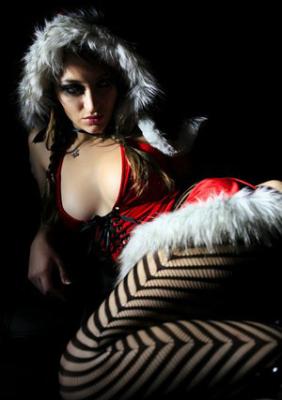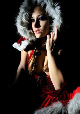 Сексуальная снегурочка в чулках позирует в новогоднюю ночь
