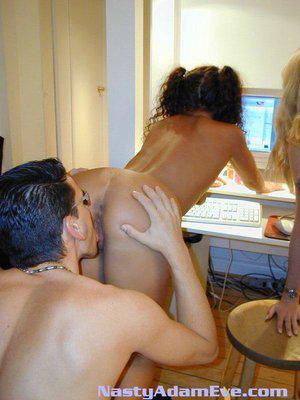 Выпив немного водки и вина, молодые студентки накинулись на друга и предложили групповой оральный секс. Одобрительно закивав головой, чувак помог милочкам обнажиться и вылизал попки и киски. Через пару минут стервы уже целовали мужское достоинство и яйца.