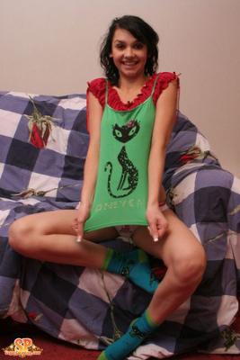 Миниатюрная нимфоманка раздевается и поглаживает киску
