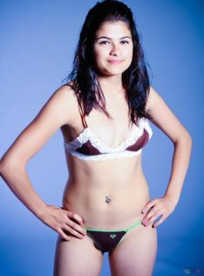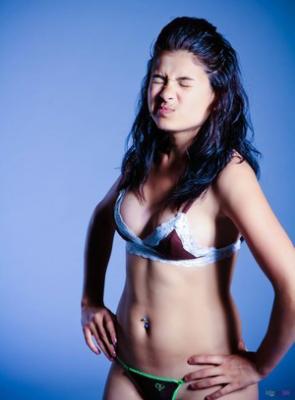 Встав перед зеркалом, смазливая миниатюрная брюнетка принялась пристально глазет на отражение. Девушка в откровенном нижнем белье был настолько горяча, что умудрилась возбудиться от своего собственного вида. Подвигав попкой, шалунишка начала подпрыгивать.