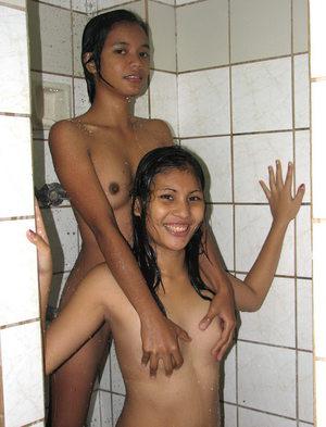 Встав под теплые струи душа, обнаженные восточные лесбиянки приступают старательно мыть друг другу промежности. Щуплые девушки от всего этого сильно заводятся, прижимаются и целуются в губы. Подрочив пилотки стоя, удовлетворенные леди продолжили намыливать попки.
