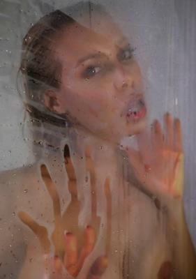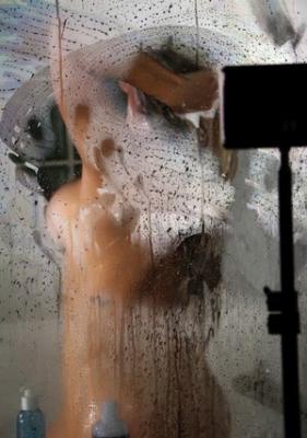 Принимая горячий душ, мокрая любовница сексуально крутила голой жопой и поглаживала бедра. Заметив что в комнату вошел любимый человек, шалунишка начала шустро прижиматься пышным бюстом к слегка вспотевшему стеклу. Пошалив, голая милфа продолжила мыться.