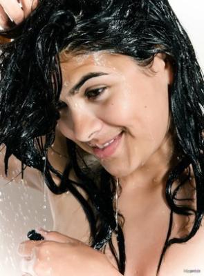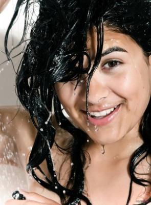 Войдя в душевую комнату к обнаженной индианке, которая мыла пизду, нахал принялся пристально глазеть на классное женское тело. Прикрыв сиськи и лобок руками, плутовка начала прогонять наглеца, но увы, похотливый тип остался и классно передернул.
