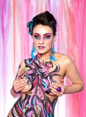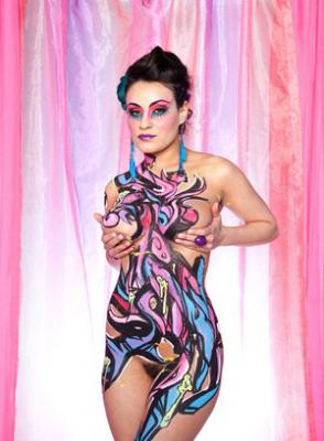 Стоя перед зеркалом черноволосая телочка стала разукрашивать стройное тело разными цветными красками. Данная эротичная процедура слегка завела бабу с пушистой пилоткой. Измазав груди и живот, телочка с красивой попкой начинает сексуально двигаться.