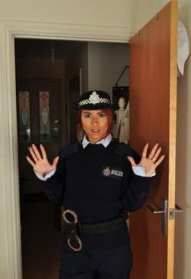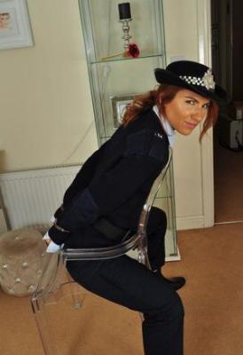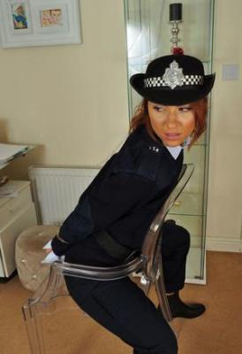 Направив на полицейскую ствол, озабоченный гангстер приказал девушке в униформе немедленно дать наручники. Приковав цыпочку к стулу, чувак засунул барышне в рот кляп и присел в дальний угол комнаты, где долгое время дрочил пенис на беспомощную милашку.