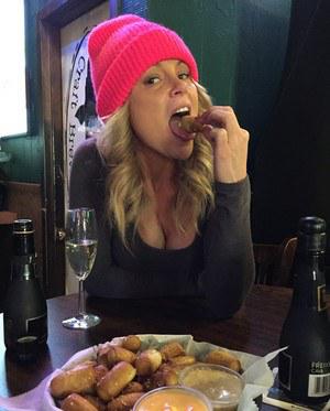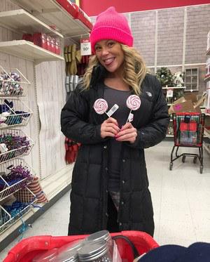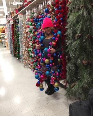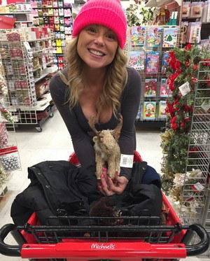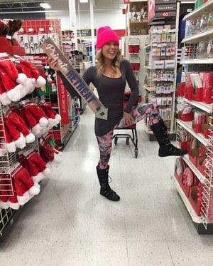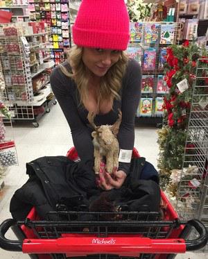 За пару дней до наступления нового года жизнерадостная барышня отправилась в магазин за подарками. Привлекательная цыпочка в лосинах и шапочке эротично позировала между рядов с товаром, наклонялась и трясла буферами. Сделав покупку, чертовка пошла перекусывать.