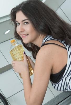 Сжарив несколько блинчиков, домохозяйка разделась прямо на кухне. Погладив сильно заросшую пизденку, девушка взяла в руки булку с рафинированным подсолнечным маслом и облила письку жидкостью. Тщательно смазав пилотку, резвая баба наклонилась и ввела пальцы в щелочку.